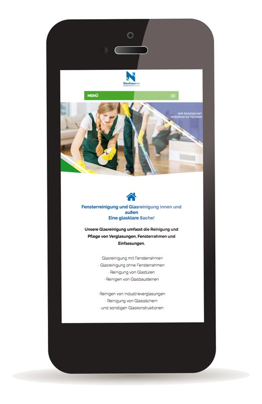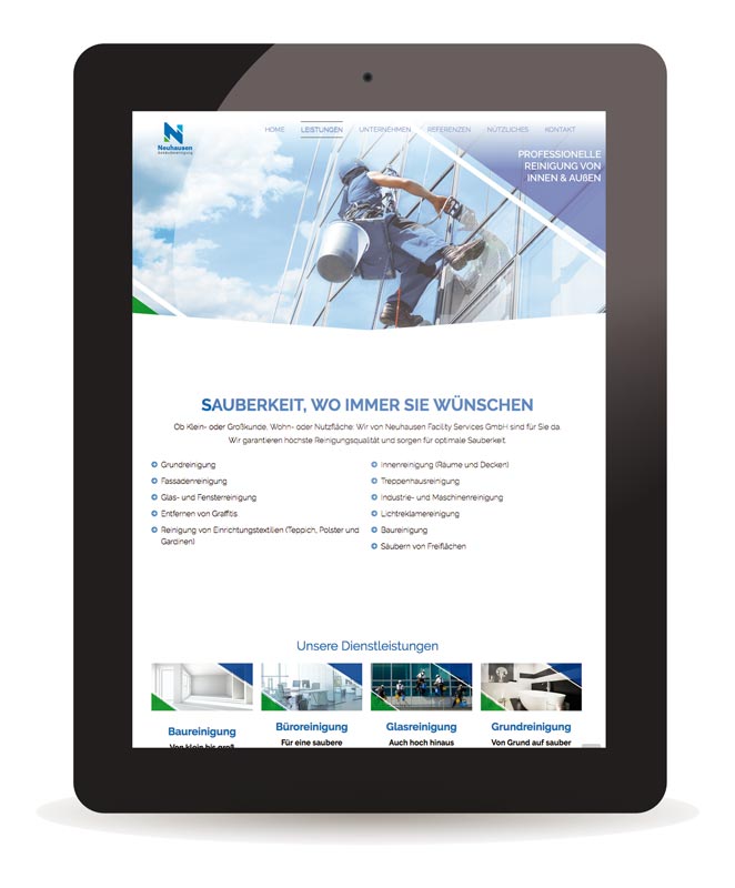 Schicke Homepage für die Firma Gebäudereinigung Neuhausen in Düsseldorf.