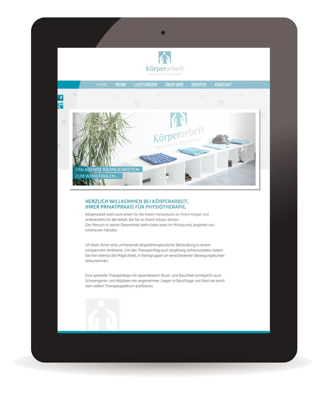 Schicke Homepage für die Bornheimer Physiotherapiepraxis „Körperarbeit“.