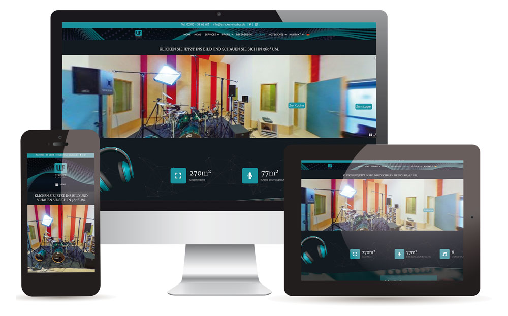 Als Besucher „Mittendrin“ - via 360° Grad Panoramarundgang durch das komplette Tonstudio inkl. aller Aufnahmeräume.